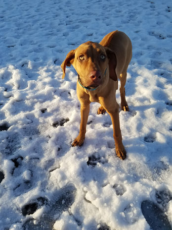 In Arabic, Azlan means lion. Azlan was my first purebred Rhodesian Ridgeback. He is the sweetest boy. Very even tempered and happy to do just about anything so long as he gets to be with me. He is a bit more reserved than Aria, but absolutely loves to run and go on hikes! One of his favorite things to do is scent/nose work. He absolutely loves using his nose and enjoys chasing squirrels up trees or pheasants through the fields. His all time favorite outdoor activity is playing in the snow. Both his Granddam & Grandsire were directly imported from South Africa.